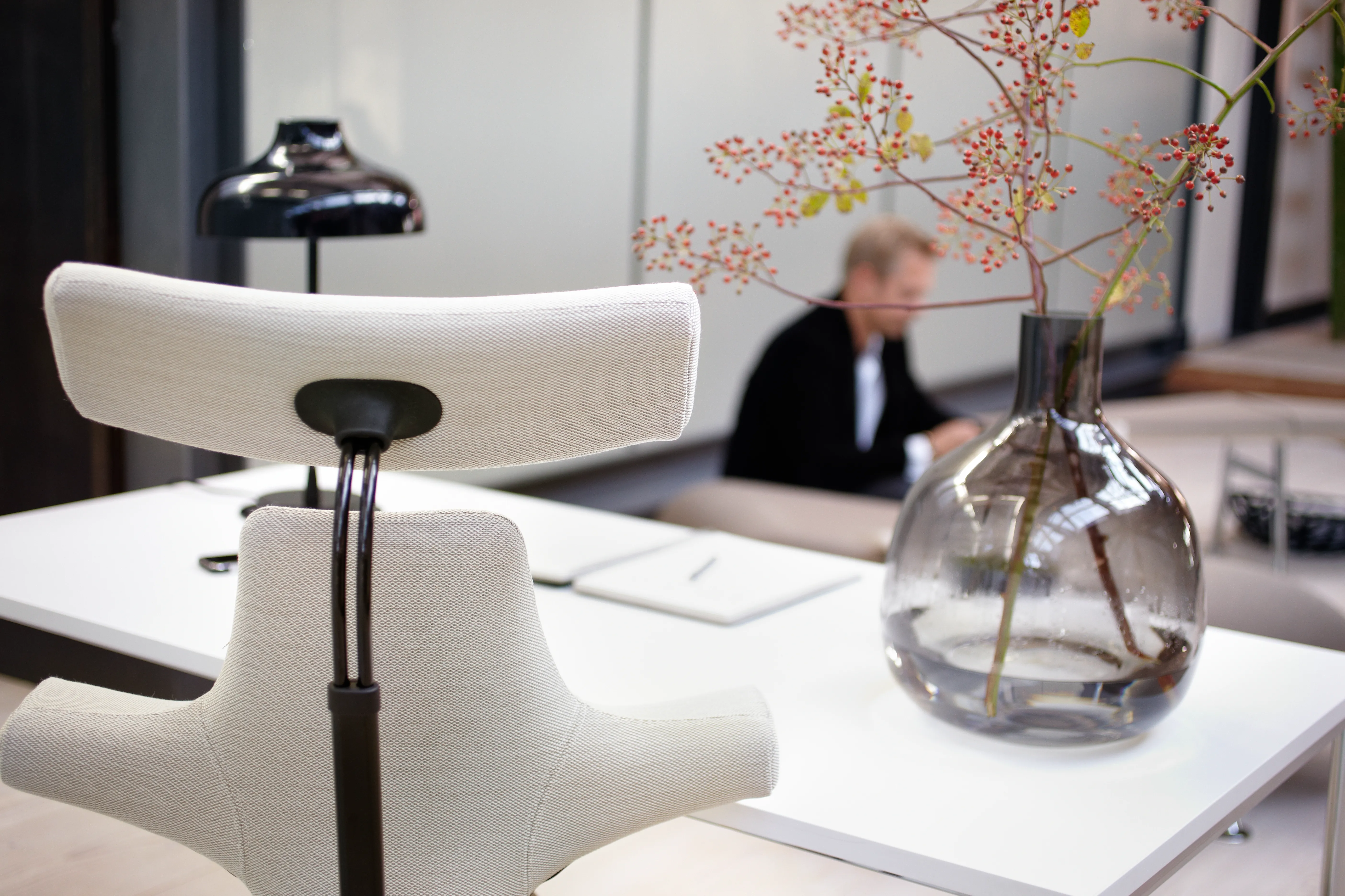 Díky své univerzálnosti se PANTONE 11-4201 Cloud Dancer dobře kombinuje s přírodními materiály, čalouněním i kancelářským nábytkem. V rámci kancelářských fit-outů tak slouží jako stabilní a dlouhodobě udržitelný základ pro kultivované pracovní prostředí.